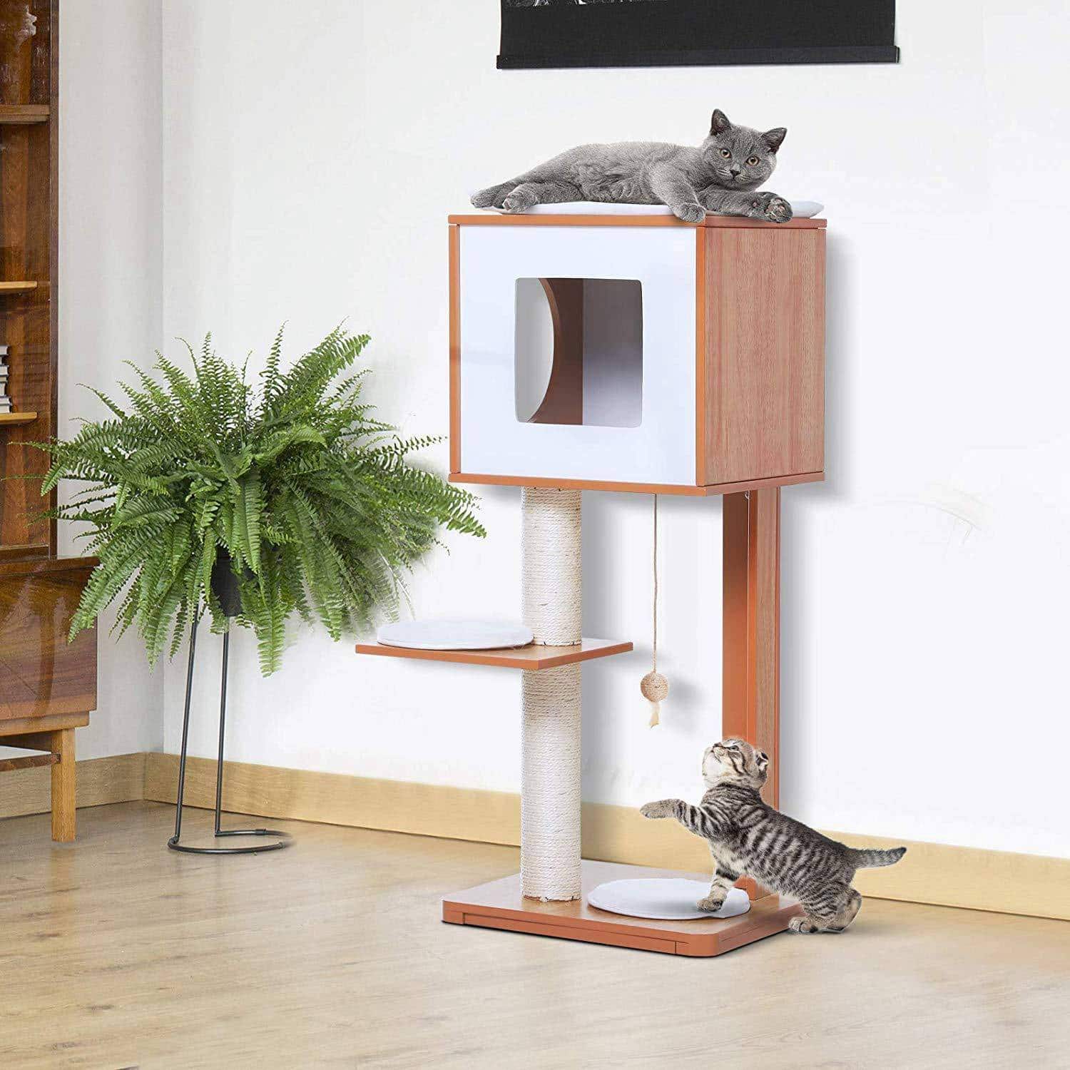 L’ Arbre à chat design en bois permet l’équilibre mental du chat et sa santé corporel. Il lui permet en plus de de tranquilliser son tempérament. En réalité même si les chats vivent dans un foyer, ils ressentent toujours le besoin instinctif d’extérioriser leur nature féline. L’ Arbre à chat design en bois leur permet ainsi de marquer leur territoire par des odeurs ou leurs coups de griffes. Il conserve votre chaton en bonne santé et le tient éloigné de la tristesse.