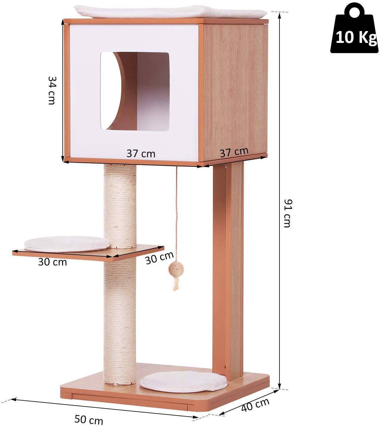 - Hauteur : avec ses 91cm de hauteur, votre chat va jouer et se reposer sereinement