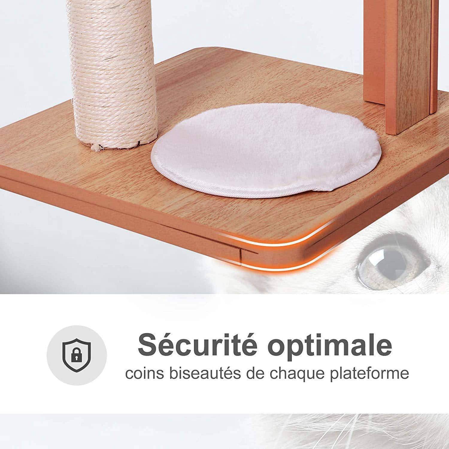 - Design: Cet arbre à chat est conçu pour s’intégrer à tous les intérieurs en apportant une touche esthétique avec sa couleur bois de hêtre